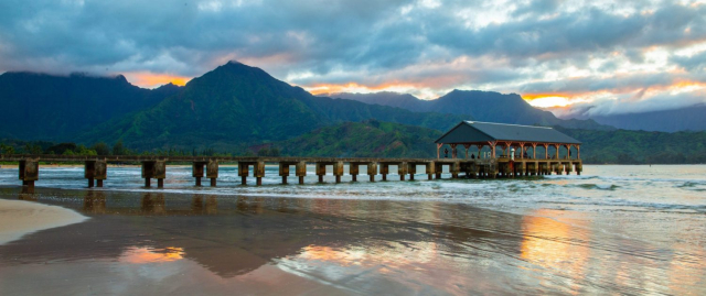 Hanalei Bay , on the North Shore, is one of the most beautiful bays in all of Hawaii. Its wide arc of golden sand, surrounded by mountains and waterfalls, makes it ideal for swimming, paddleboarding, or simply admiring the scenery. Hanalei Village offers a bohemian and artistic atmosphere.