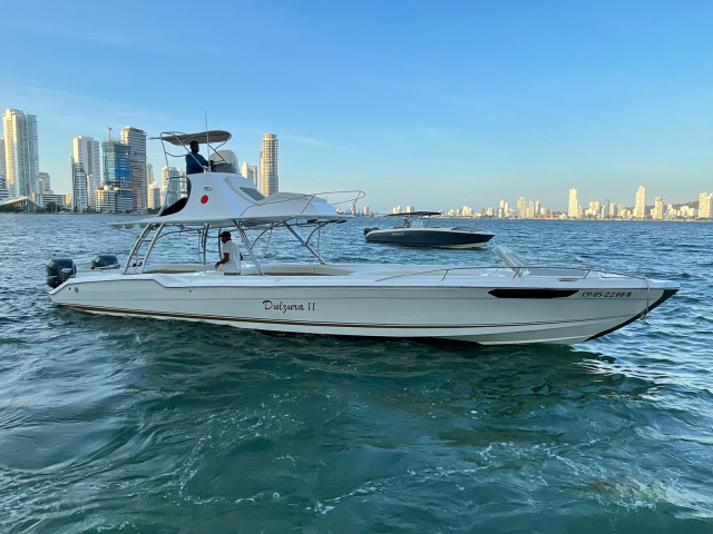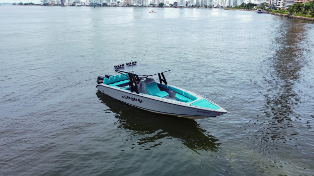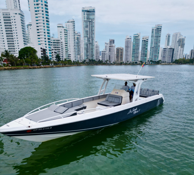 Powered by two powerful Yamaha engines, this boat guarantees a safe and stable ride, perfect for exploring paradisiacal destinations such as the Rosario Islands, Barú or Cholón. Its spaciousness, ergonomic layout and top-quality finishes make it the ideal choice for any occasion, whether it's a family outing, a special celebration or a day of fun with friends.