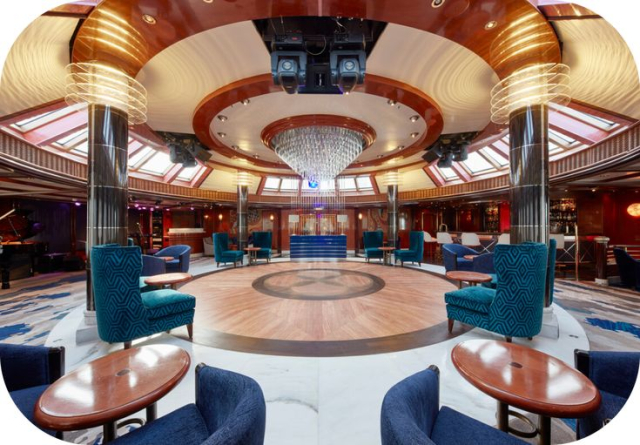 - Queen Elizabeth: Inaugurado en 2010, es un tributo a la era dorada de los cruceros, pero con un toque moderno que eleva la experiencia de lujo. Con capacidad para 2,081 pasajeros, este majestuoso barco se distingue por su estilo Art Decó, creando un ambiente que mezcla el glamour de antaño con las comodidades del presente. A bordo, los pasajeros pueden disfrutar del Royal Court Theatre, un teatro con producciones al estilo West End, o relajarse en el Mareel Wellness & Beauty, un spa de última generación que ofrece tratamientos rejuvenecedores. Para los amantes de la gastronomía, el Queen Elizabeth cuenta con restaurantes exclusivos como el The Verandah, donde se sirven platos gourmet inspirados en la cocina francesa. Además, los días en alta mar pueden incluir tardes de té al estilo británico en el Queens Room, un salón donde se realizan bailes formales que evocan la sofisticación de épocas pasadas.