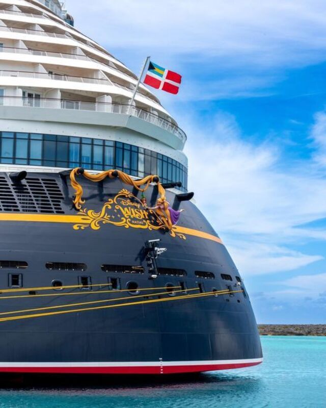 - Disney Wish: El Disney Wish, el barco más nuevo de la flota, fue inaugurado en 2022. Este barco combina la innovación con la clásica magia de Disney y ofrece una experiencia de lujo con toques modernos. Algunos de sus aspectos más destacados incluyen el restaurante Arendelle: A Frozen Dining Adventure, inspirado en Frozen, y Star Wars: Hyperspace Lounge, un bar temático para adultos que simula un viaje por la galaxia. El Disney Wish navega principalmente por las Bahamas.