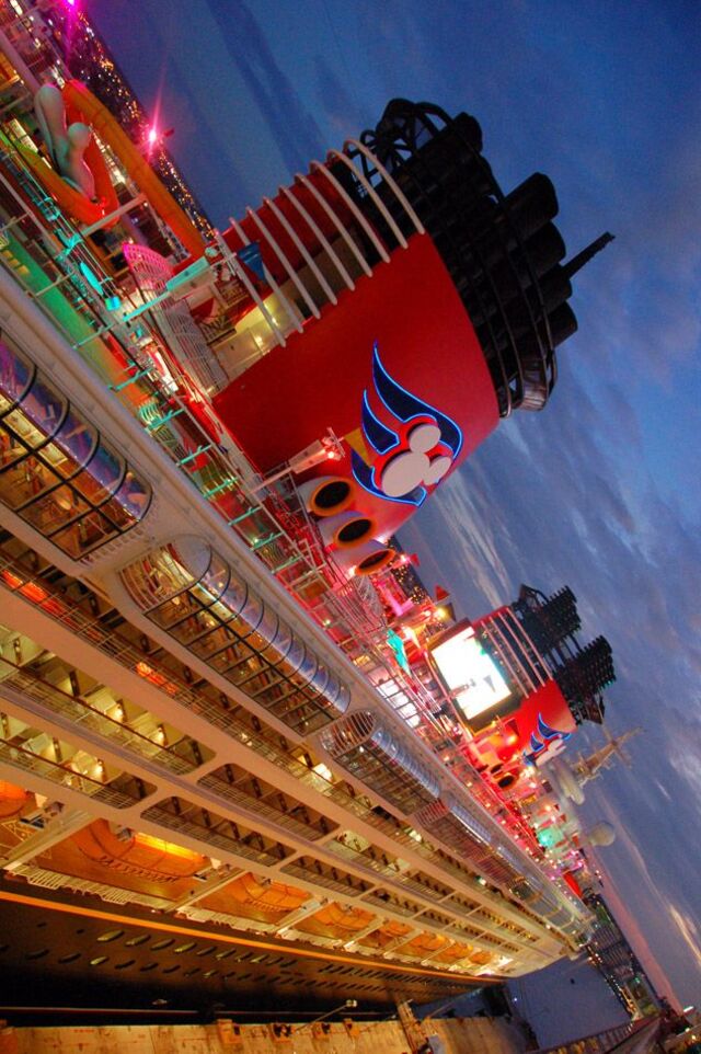 - Disney Magic: El Disney Magic es el barco original de la flota, lanzado en 1998. Su diseño evoca la elegancia de los transatlánticos clásicos, combinado con toques de la magia de Disney. El Disney Magic tiene una capacidad para alrededor de 2,700 pasajeros y ofrece una variedad de entretenimientos, como el espectáculo Tangled: The Musical y la experiencia de cena interactiva en Animator's Palate. Este barco suele operar itinerarios por el Caribe, Europa y el Atlántico.