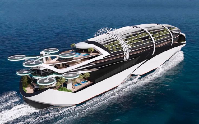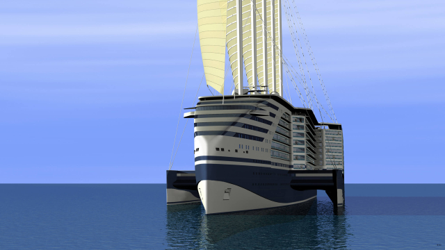 - Chantiers de l'Atlantique: Es un astillero francés líder en la construcción de buques de crucero y otras embarcaciones de gran escala. Este proyecto conceptualiza un barco que combina tecnologías avanzadas y diseño sostenible para minimizar el impacto ambiental y mejorar la eficiencia energética. Anteriormente conocido como STX Europe, esta empresa se encuentra enfocada en su proyecto llamado Eoseas el cual está diseñado para utilizar una combinación de energía eólica, solar y biogás para la propulsión. Esto incluye cinco mástiles equipados con velas rígidas que capturan la energía del viento, reduciendo significativamente el uso de combustibles fósiles. Además, el barco incorpora paneles solares en la cubierta para aprovechar la energía del sol y biogás como combustible alternativo. El casco del Eoseas está diseñado para ser aerodinámico y minimizar la fricción, permitiendo al crucero moverse con mayor facilidad a través del agua. El crucero incluye tecnología inteligente para mejorar la experiencia del pasajero, como sistemas de gestión de cabinas automatizados, conectividad a internet de alta velocidad y aplicaciones móviles para facilitar la navegación y el acceso a los servicios a bordo. Adicionalmente, está conceptualizado para ofrecer una experiencia de lujo a los pasajeros, con espacios amplios y bien diseñados que incluyen áreas comunes, restaurantes, piscinas y zonas de entretenimiento. La distribución y el diseño interior están pensados para maximizar el confort y la eficiencia del espacio.