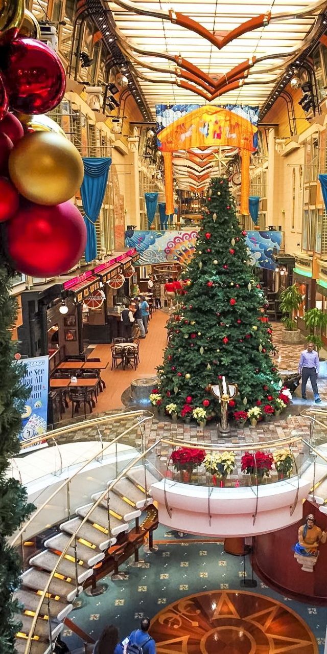 - Royal Caribbean: Royal Caribbean es conocida por su ambiente vibrante y dinámico, perfecto para quienes buscan una fiesta de fin de año llena de energía. Sus barcos más grandes ofrecen un sinfín de actividades, desde espectáculos en vivo y patinaje sobre hielo hasta simuladores de surf y paredes de escalada. Las celebraciones de fin de año incluyen espectáculos de fuegos artificiales en alta mar, fiestas temáticas, y una cuenta regresiva animada en la cubierta principal.