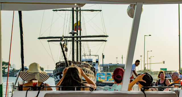 - Tour por la Bahía de Cartagena: Un tour por la Bahía de Cartagena es una manera romántica de conocer la ciudad desde una perspectiva diferente. Durante el recorrido, podrán admirar el contraste entre la moderna ciudad con sus rascacielos y el histórico centro amurallado. El tour generalmente incluye una visita a los fuertes y castillos que protegen la bahía, ofreciendo un vistazo a la rica historia militar de la ciudad. Al atardecer, la bahía se tiñe de colores cálidos, creando un escenario mágico perfecto para disfrutar en pareja, especialmente si se acompaña de una copa de vino o un cóctel.