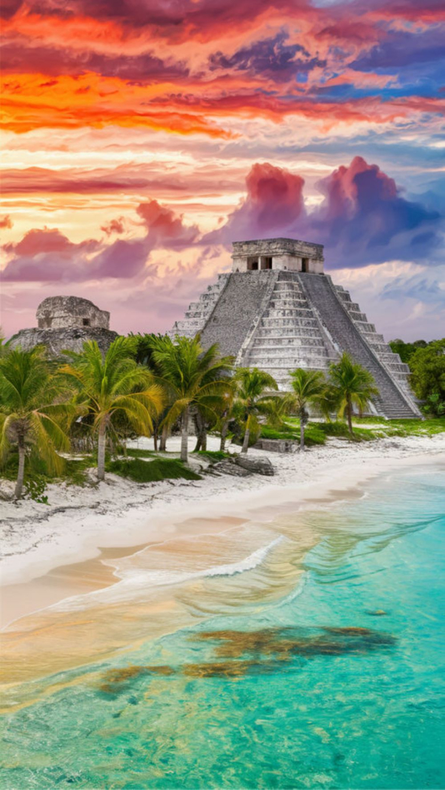 - Descripción del sitio: Tulum es una antigua ciudad maya ubicada en un acantilado que ofrece una vista espectacular del Mar Caribe. Este sitio no solo es conocido por su valor arqueológico, sino también por su belleza natural.