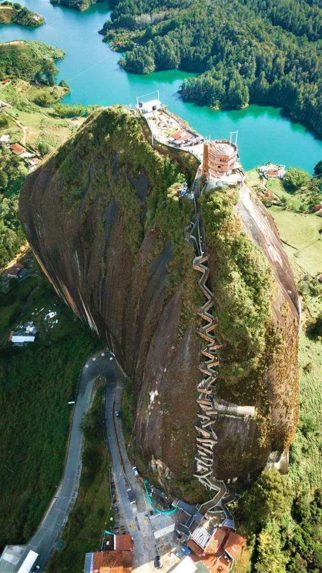 - La Piedra del Peñol: La Piedra del Peñol es un imponente monolito de más de 200 metros de altura que se erige majestuosamente en el municipio. Esta formación rocosa es uno de los destinos turísticos más icónicos del país, atrayendo a visitantes con su impresionante estructura y la promesa de vistas panorámicas inigualables. Subir los escalones que llevan a la cima es una aventura que recompensa a los aventureros con una vista espectacular del embalse de Guatapé y los paisajes circundantes. La cima de la Piedra del Peñol ofrece una experiencia visual única, donde el azul del agua y el verde de la vegetación se mezclan en un escenario de belleza natural incomparable.