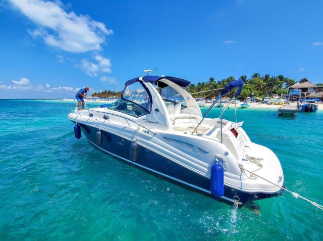 Pero una cosa es “ir a Isla Mujeres” y otra muy distinta es hacerlo en yate privado. Ahí cambia por completo la experiencia. En vez de limitarte al traslado, conviertes el recorrido en parte central del plan. No se trata solo de llegar, sino de disfrutar cada momento del camino: el ambiente a bordo, la sensación de exclusividad, las paradas para nadar y la posibilidad de vivir el Caribe a tu ritmo.